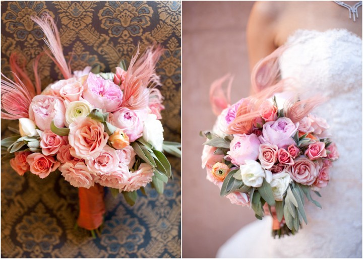 Probably one of my favorite bouquets I've seen in the blog world. Simply loving how she incorporated the feathers!